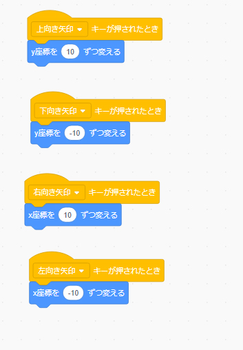 左矢印・・・・・・X座標-10ずつ変える