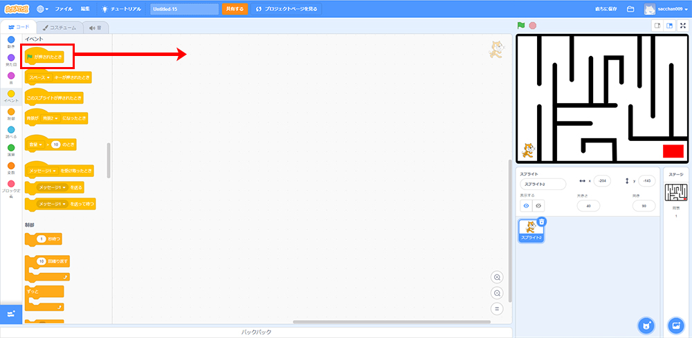 [イベント]から「旗が押されたとき」をクリックしよう